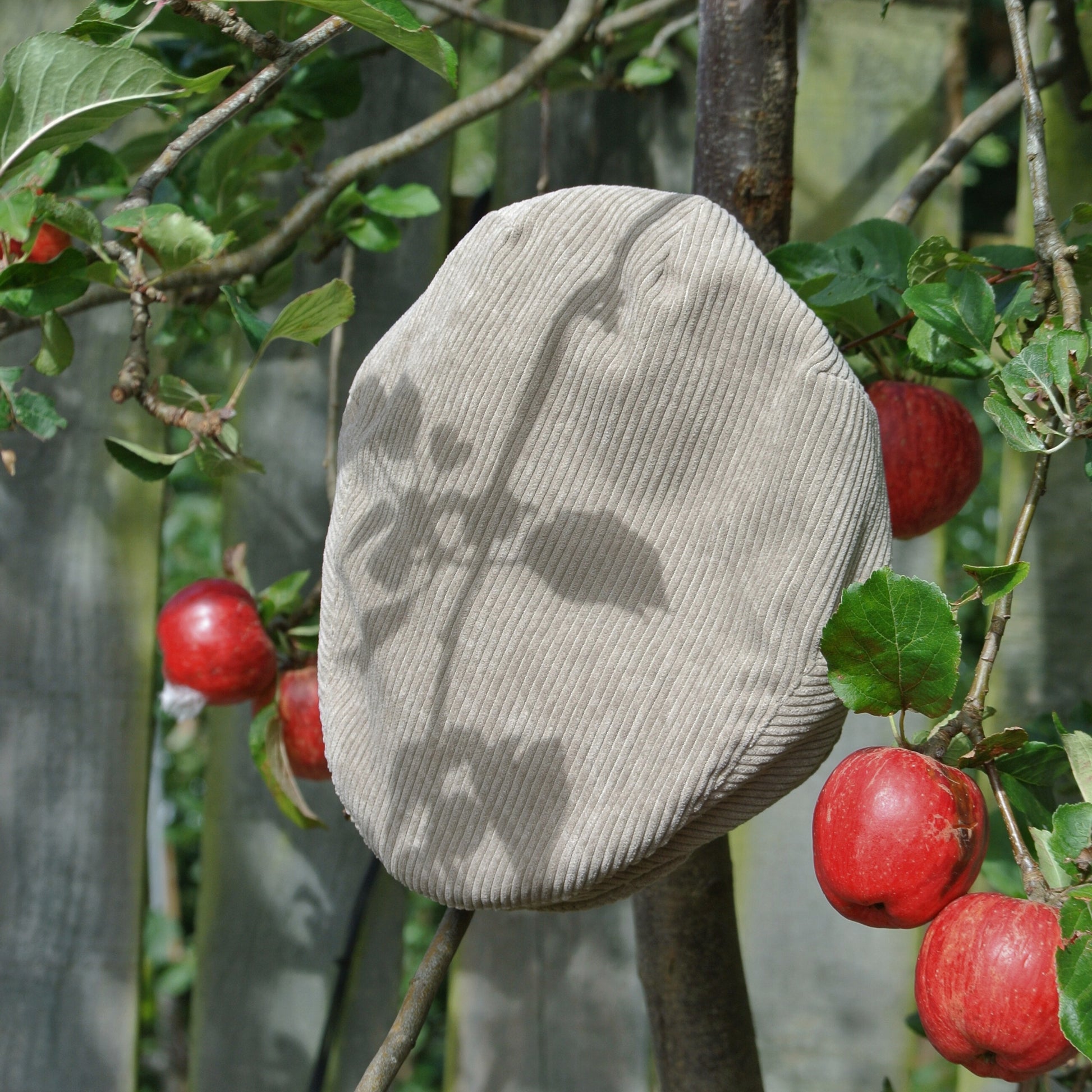 Lazy Pheasant flat cap made from corduroy in beige - Handmade in Scotland.