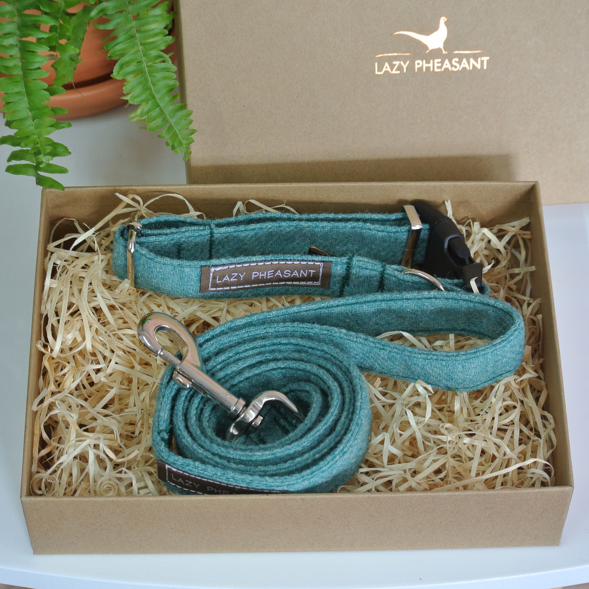 Tweed Dog Collar and Lead Gift Set - Turquoise